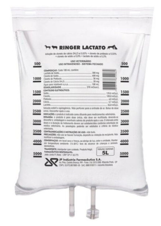 Indicações: O Produto JP Ringer Lactato é indicado como diluente para medicamentos veterinários.